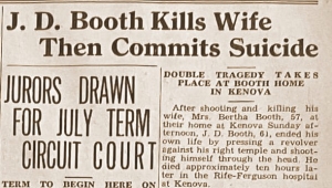J.D. and Bertha’s only grandchild, Alex Booth, Jr., was ten years old in 1936 and living with them. He was working at the pool that afternoon when the murder-suicide occurred. Eight decades later, in a biography written by his wife, he offered another reason for the tragedy. He claimed that his grandparents constantly argued and that J.D. resented that Bertha had only given him one child instead of the large family he wanted.
