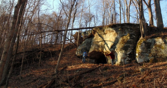 Prehistoric hunters long roamed the woodlands in the present-day Lewis Wetzel Wildlife Management Area. The camped in a cave on a ridge upon which they also inscribed images of animals.